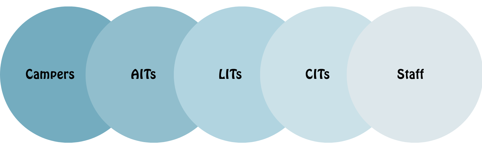 An intentionally designed program engaging teen campers in a progressive program developing leadership skills and faith development over several years to prepare them for application to the summer staff team or other church/life opportunities